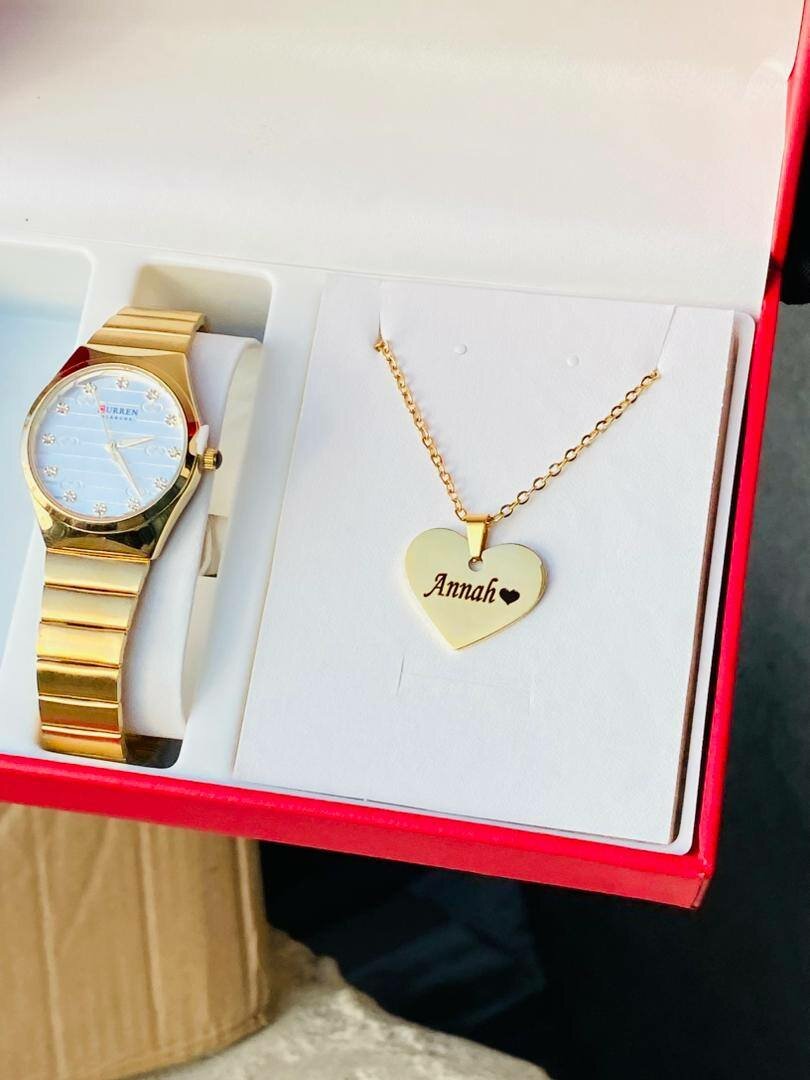 Offrez une touche d'élégance avec cet ensemble de montre et pendentif doré. Parfait pour rehausser n'importe quelle tenue avec style et sophistication. Idéal pour les occasions spéciales ou comme cadeau inoubliable. Conçu pour ceux qui apprécient le luxe et le raffinement.