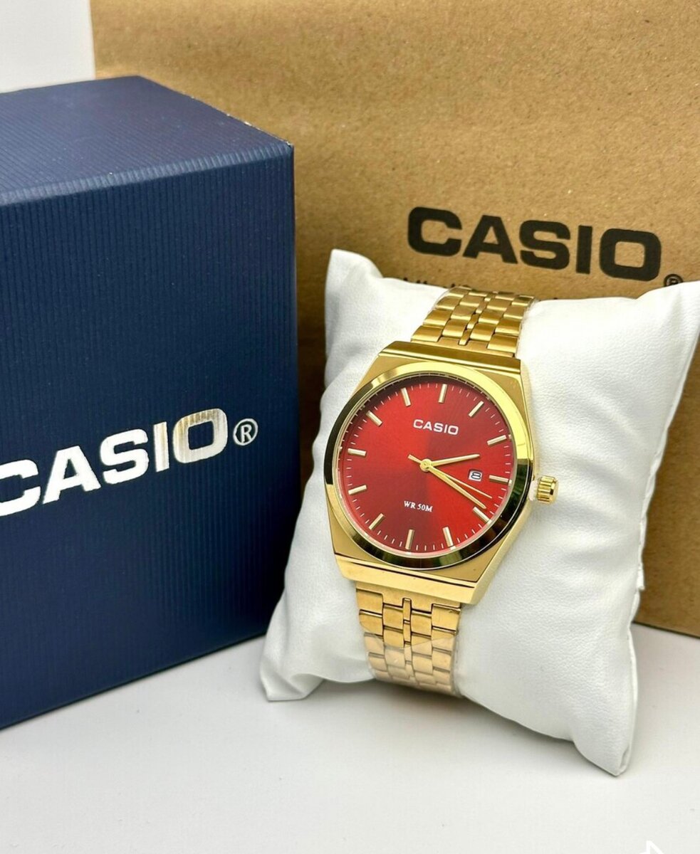 Élégante montre Casio pour femme, avec un bracelet et un boîtier en or. Le cadran rouge vibrant ajoute une touche de sophistication. Parfaite pour les occasions spéciales ou un usage quotidien, cette montre allie style et fonctionnalité. Conçue pour les femmes qui apprécient le luxe et la précision.