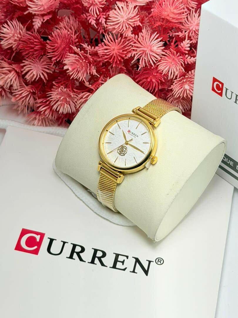 Élégante montre CURREN pour femme avec un bracelet en métal doré et un cadran blanc. Design raffiné et précis, idéal pour compléter votre look.