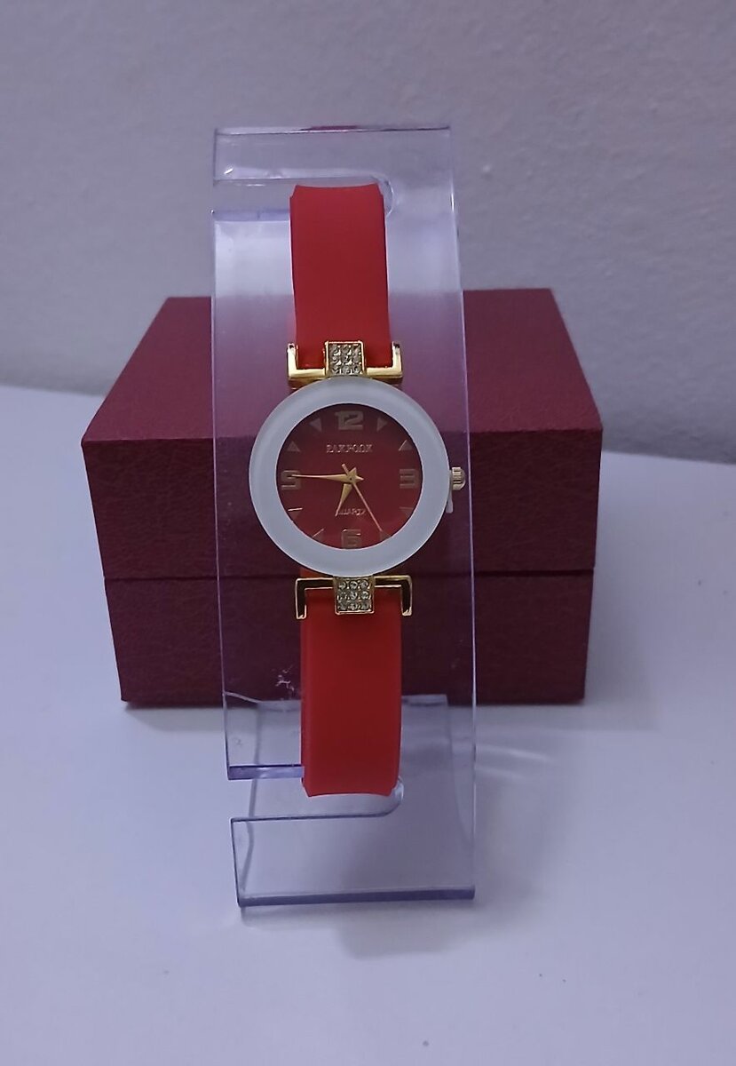 Découvrez cette élégante montre pour femme avec un bracelet rouge vibrant et un cadran doré. Parfait pour ajouter une touche de luxe à votre tenue quotidienne. Idéale pour offrir dans sa belle boîte cadeau incluse. Ne manquez pas cette pièce raffinée qui attire tous les regards.