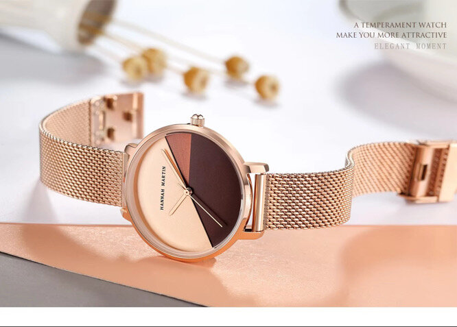 Élégante montre pour femme avec bracelet maille milanaise en or rose. Design moderne et minimaliste parfait pour toute occasion. Complétez votre style avec ce bijou de mode.