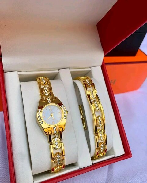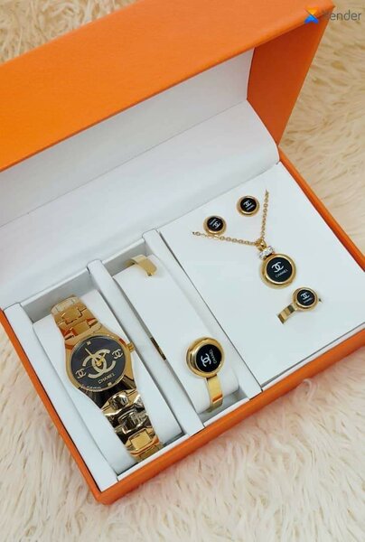 Ensemble Montre et Bijoux Vert et Doré Tendance
