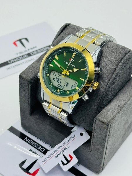 Cette montre chronographe élégante et robuste en acier inoxydable offre précision et style. Parfaite pour les passionnés de sport, elle combine un design moderne avec une fonctionnalité avancée. Idéale pour une utilisation quotidienne et en activités sportives. Design masculin.