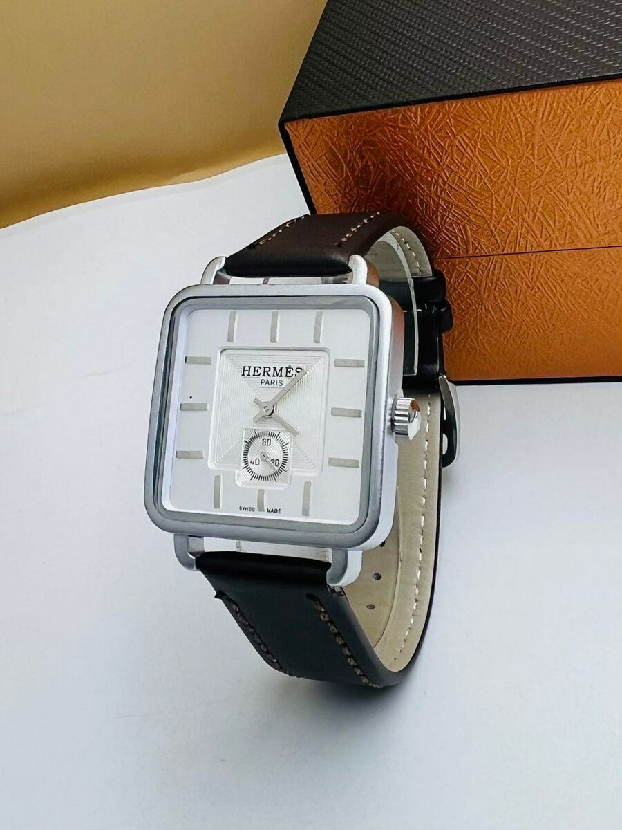 La montre Hermès incarne l'élégance et l'artisanat d'exception. Son boîtier en acier ou or, allié à un cadran épuré, reflète un design intemporel. Les bracelets en cuir, emblématiques de la marque, sont confectionnés à la main. Le mouvement mécanique suisse garantit précision et fiabilité. Chaque détail, du cadran aux aiguilles, est conçu avec raffinement. C'est une pièce de luxe qui allie savoir-faire artisanal et innovation horlogère. Une montre Hermès est une véritable œuvre d'art à porter.