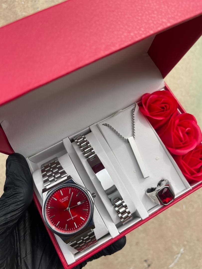 Ensemble élégant pour homme comprenant une montre avec bracelet métallique et collier en argent. Cadeau idéal pour une occasion spéciale.