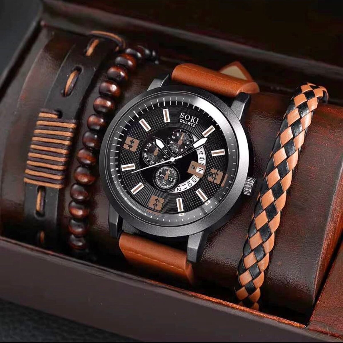 Découvrez notre montre homme élégante avec bracelets en cuir et perles. Parfaite pour un style sophistiqué. Idéal pour les cadeaux d'anniversaire ou occasions spéciales. Style et qualité réunis.