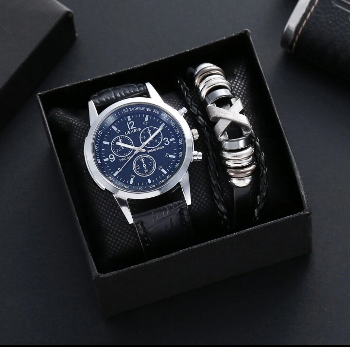 Découvrez notre ensemble montre et bracelet pour homme, alliant style et sophistication. Idéale pour toutes occasions, la montre présente un design classique avec une finition en cuir et un bracelet chic pour un look moderne et raffiné. Parfait pour les hommes soucieux de leur style, ce duo est un choix parfait pour compléter votre tenue.