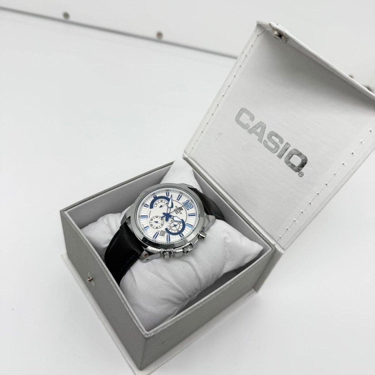 Découvrez l'élégance de cette montre chronographe Casio pour homme. Avec son bracelet en cuir noir et son cadran sophistiqué, elle est l'accessoire parfait pour toute occasion. Résistante et précise, elle allie style et fonctionnalité. Parfaite pour les affaires ou les sorties décontractées.