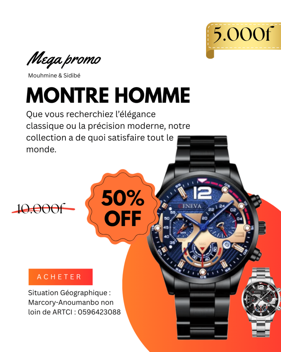 Découvrez l'élégance sophistiquée de cette montre homme chronographe. Avec son bracelet en acier inoxydable noir et son design moderne, elle est parfaite pour toutes les occasions. Résistante et précise, elle offre un style intemporel pour les hommes modernes.