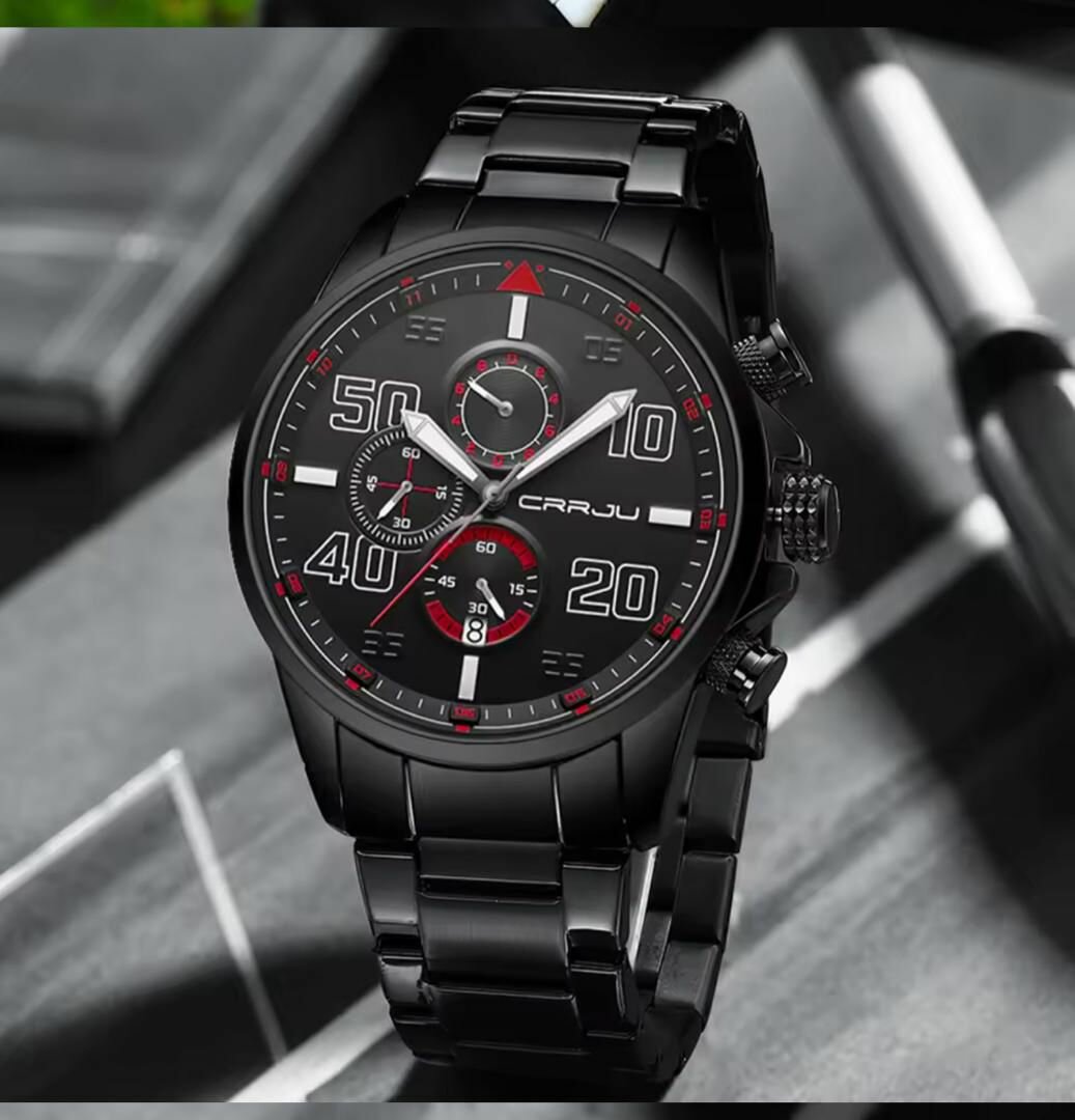 Découvrez la montre CRRJU pour homme, alliant style et fonctionnalité. Avec son design élégant en acier inoxydable noir, elle est idéale pour les professionnels et les occasions spéciales. Caractéristiques remarquables : cadran chronographe, verre résistant aux rayures et bracelet ajustable. Parfaite pour ajouter une touche d'élégance à votre tenue.