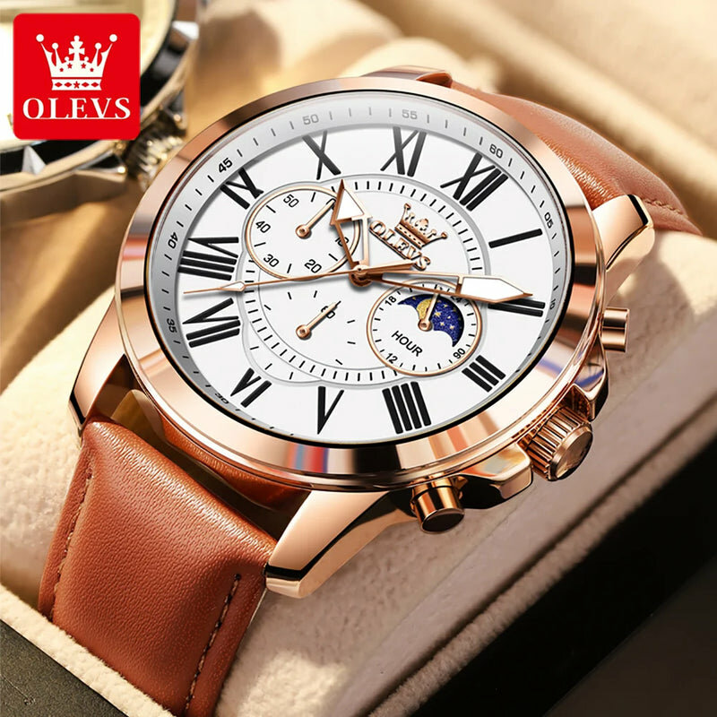 Découvrez l'élégance classique de la montre homme OLEVS avec bracelet en cuir marron. Ce chronographe robuste, doté d'un boîtier en acier inoxydable, offre une lecture précise et un design intemporel. Parfaite pour les occasions formelles ou pour ajouter une touche de sophistication à votre quotidien. Un choix idéal pour ceux qui apprécient style et fonctionnalité.