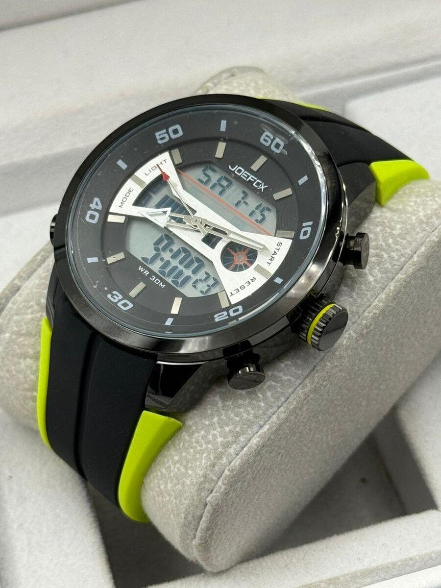 Montre sportive pour homme avec affichage numérique et analogique, bracelet en silicone résistant. Idéale pour les activités sportives et le quotidien.