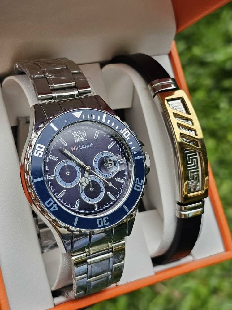 Découvrez cette montre homme élégante avec bracelet métallique et cadran chronographe. Idéale pour toute occasion, elle est accompagnée d'un bracelet décoratif en acier et cuir, ajoutant une touche moderne et sophistiquée à votre tenue. Parfaite pour les hommes soucieux de leur style.