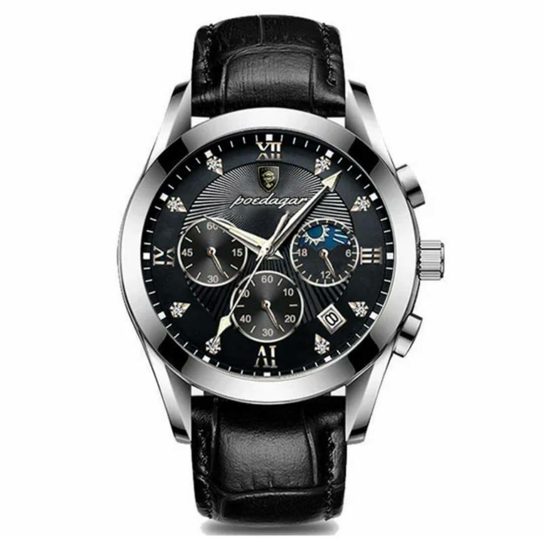 Découvrez la montre homme Poedagar, alliant élégance et fonctionnalité. Son cadran noir avec chronographe et bracelet en cuir véritable offre un style sophistiqué. Parfaite pour un usage quotidien ou une occasion spéciale, elle ajoute une touche de classe à chaque tenue.