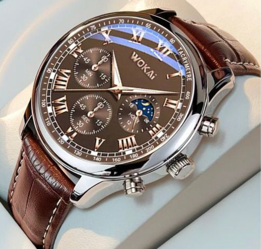 Adoptez l'élégance avec cette montre homme Wokai. Mécanisme précis, style classique, bracelet en cuir véritable. Parfaite pour les occasions formelles ou quotidiennes. Design intemporel pour un homme moderne.