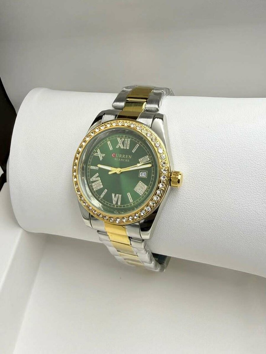 Montre homme élégante en acier inoxydable bicolore avec cadran vert. Parfait pour les occasions formelles et décontractées. Design étincelant avec détails dorés, idéal pour un style raffiné.