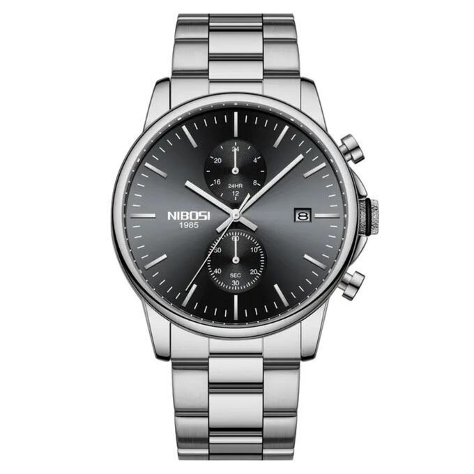 Élégante montre chronographe NIBOSI pour homme, en acier inoxydable. Idéale pour les occasions formelles et décontractées. Résistante à l'eau et dotée d'un design intemporel, elle ajoute une touche de classe à votre poignet.