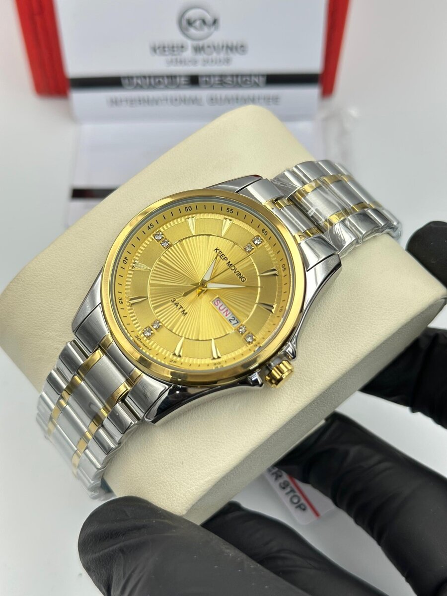 Découvrez cette montre pour homme au design sophistiqué en or et argent. Idéale pour une utilisation quotidienne ou les occasions spéciales, elle offre un affichage jour-date tout en ajoutant une touche de luxe à votre poignet. Parfait choix pour les amateurs de montres raffinées.