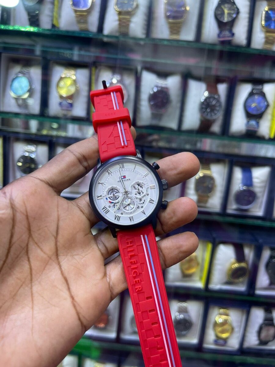 Découvrez cette élégante montre homme sportive avec bracelet rouge en silicone. Dotée d'un cadran complexe et d'une technologie cinétique pour une durabilité accrue. Idéale pour les amateurs de style dynamique, elle complète parfaitement vos tenues décontractées ou sportives.