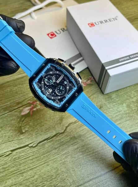 Montre Curren silicone bleu cadran carré - neuve