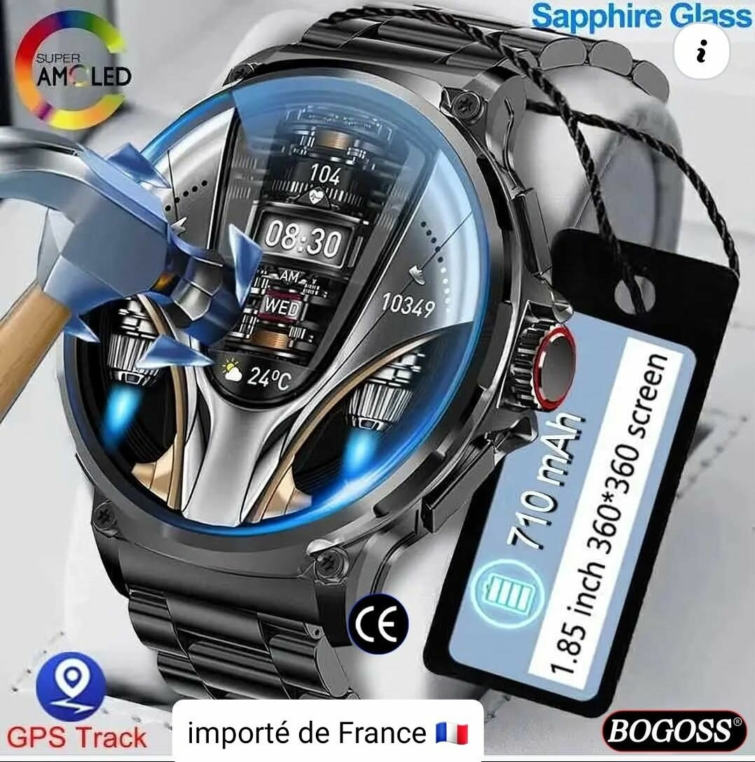 Découvrez notre montre intelligente avec écran AMOLED et verre saphir. Idéale pour les passionnés de technologie, elle offre un suivi GPS précis et une batterie longue durée de 710 mAh (jusqu'à 20 jours)Avec son design élégant en acier inoxydable, elle s'adapte à toutes les occasions. Un choix parfait pour rester connecté avec style.