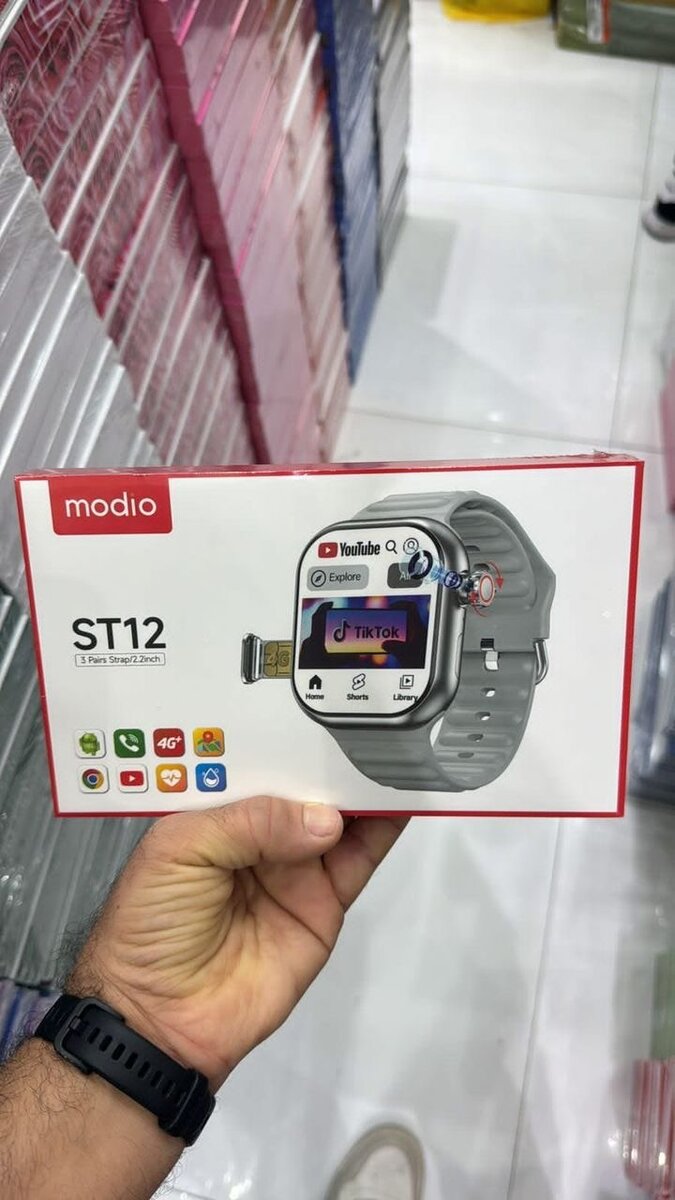 Découvrez la montre intelligente Modio ST12. Elle est dotée d'un écran tactile pour une utilisation intuitive et d'un bracelet en silicone pour un confort optimal.
