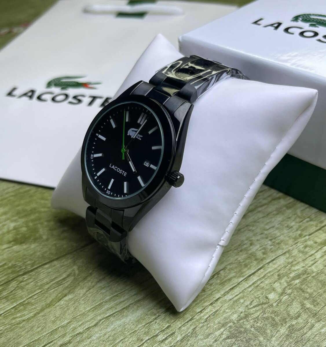 Élégante montre homme Lacoste avec bracelet en acier inoxydable et cadran noir. Parfaite pour un style chic et moderne au quotidien. Résistante à l'eau, elle est le choix idéal pour toutes les occasions, que ce soit au travail ou lors d'une sortie mondaine. Design intemporel et raffiné qui s'adapte à toutes les tenues.