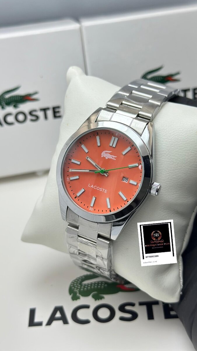 Élégante montre Lacoste pour homme avec bracelet en acier inoxydable et cadran orange vibrant. Parfait pour toutes les occasions. Haute qualité et design intemporel, adapté aux styles décontractés ou formels.