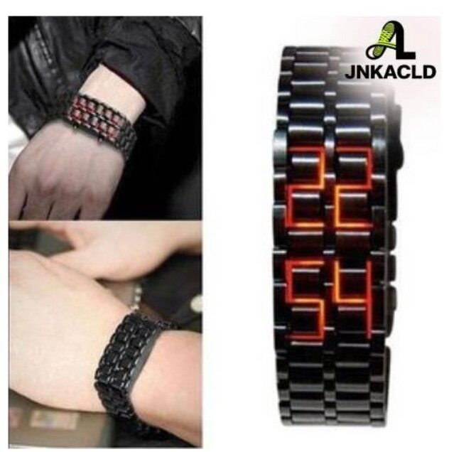 Élégante montre LED numérique pour homme au design moderne. Bracelet noir en acier inoxydable, résistant et tendance. Affichage LED rouge clair, parfait pour une lecture facile de l'heure en toutes circonstances. Idéale pour un look urbain et moderne.