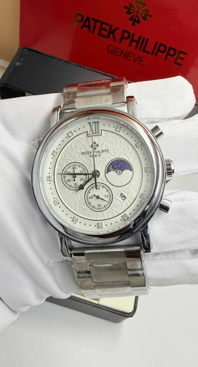 Découvrez la montre Patek Philippe avec complication de phase de lune, symbole de luxe et d'élégance. En acier inoxydable, elle offre une précision horlogère exceptionnelle et un design raffiné. Parfaite pour les occasions spéciales, elle rehausse n'importe quelle tenue avec sophistication. Un choix idéal pour les amateurs de montres de prestige.