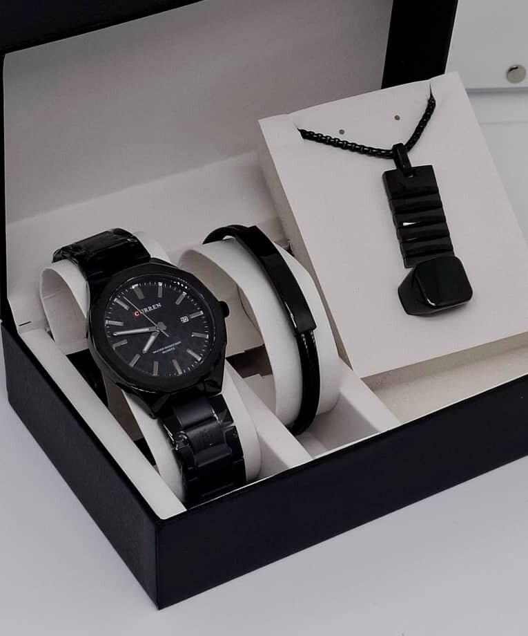 Ensemble montre et bracelet pour homme. Conception élégante et moderne. Plusieurs couleurs disponibles : argent, or et noir.