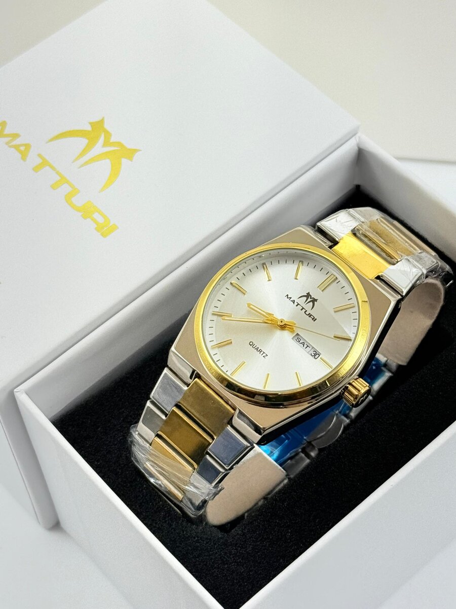 Explorez l'élégance de la montre MATTURI, un choix parfait pour les occasions formelles et le quotidien. Son design en acier inoxydable doré ajoute une touche raffinée à n'importe quelle tenue. Ideale pour les hommes qui apprécient le style et la sophistication. Fonctionnement quartz de haute précision.
