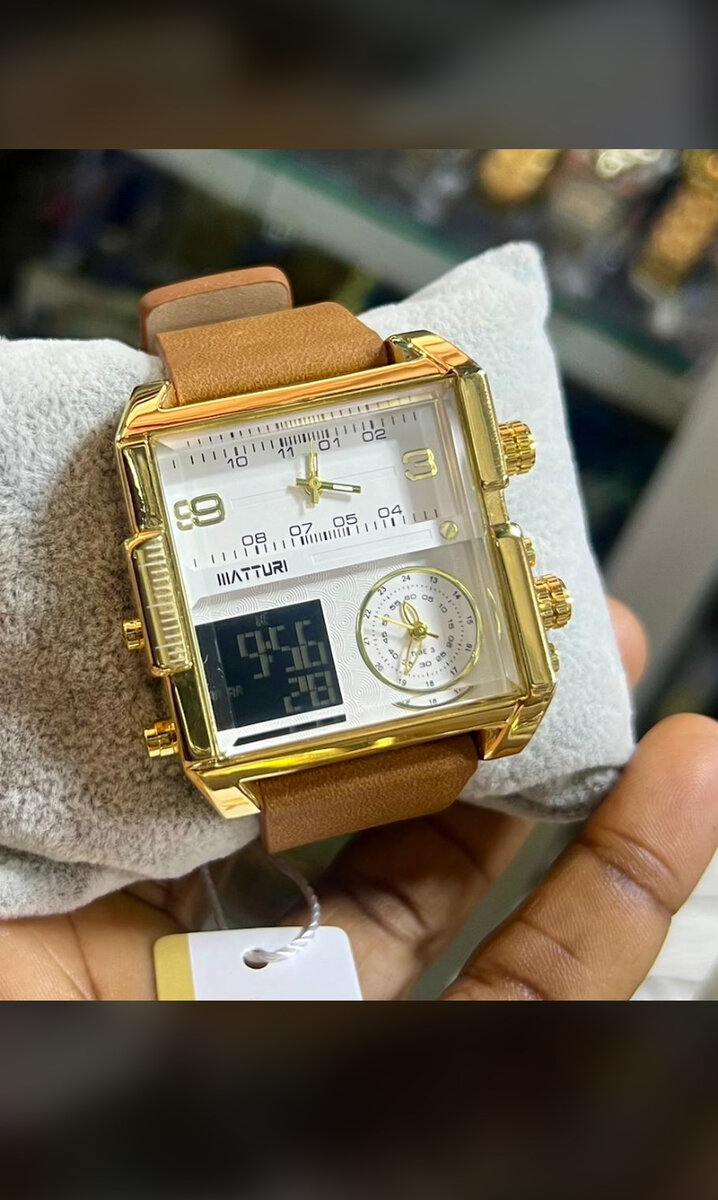 Élégante montre multifonction avec bracelet en cuir marron. Cadran doré avec chronographe et affichage LCD offre un style moderne et sophistiqué. Parfaite pour toute occasion, cette montre allie luxe et fonctionnalité.