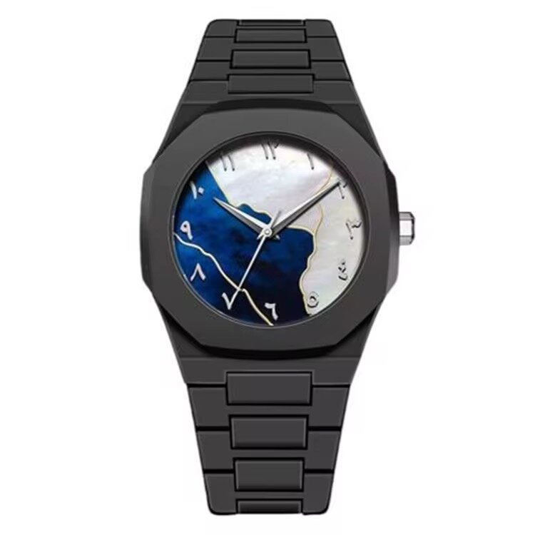 Adoptez l'élégance avec cette montre noire dotée d'un cadran artistique unique. Son design moderne et audacieux en fait un accessoire indispensable. Idéale pour toutes les occasions, elle rehaussera votre style avec une touche d'originalité. Confortable et séduisante, c'est le choix parfait pour les amateurs de mode.