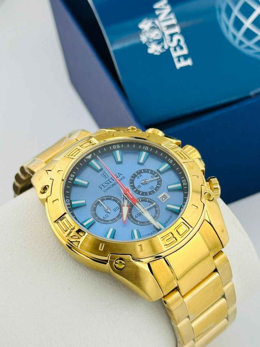montre or avec cadran bleu