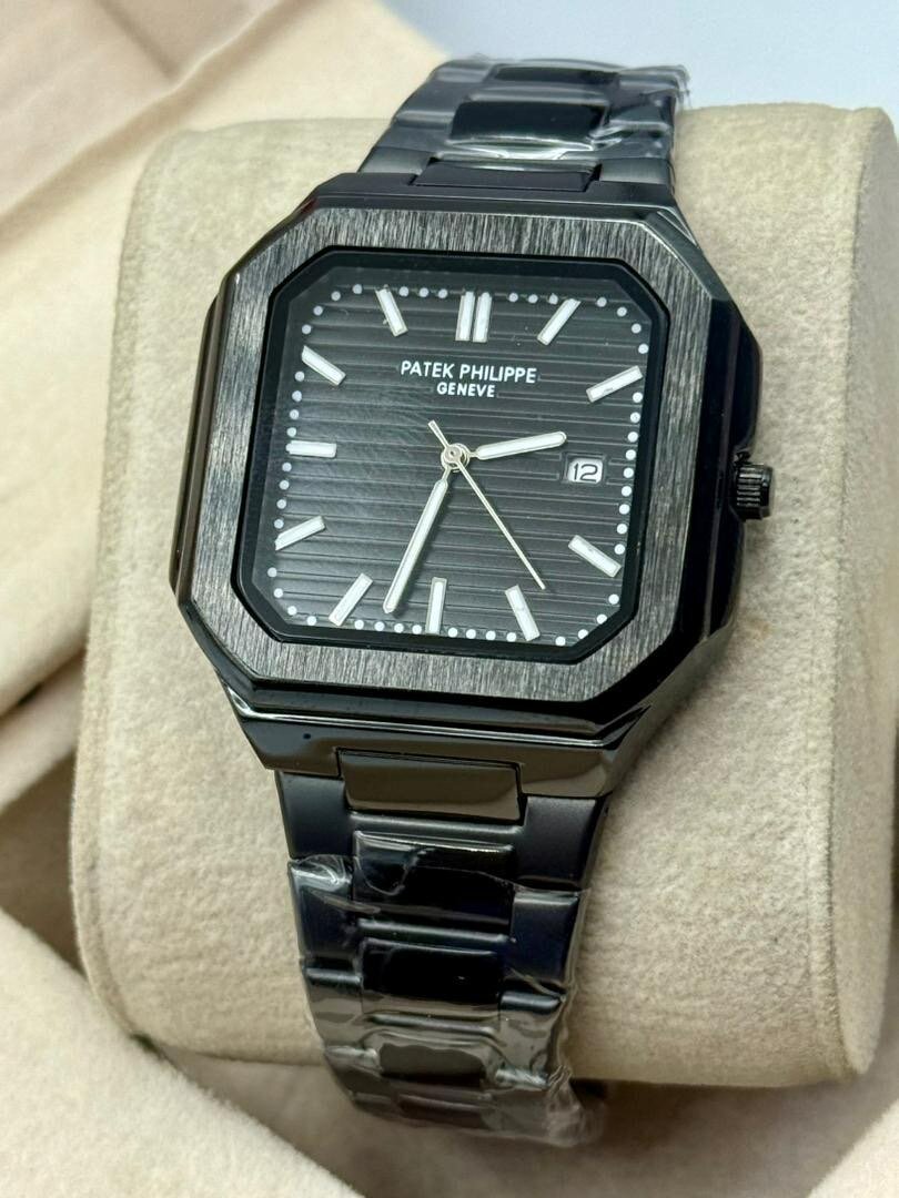 Découvrez l'élégance intemporelle de la montre Patek Philippe noire. Son design carré en acier inoxydable chic s'adapte à toutes les occasions. Parfait pour les amateurs de luxe, cette montre offre un style et une précision inégalés.