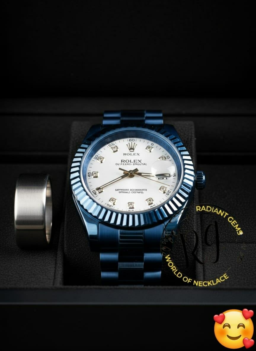 Découvrez l'élégance ultime avec cette montre Rolex pour homme. Son design bleu distinctif et ses détails sophistiqués la rendent idéale pour toute occasion. Parfait cadeau de luxe pour souligner votre style.