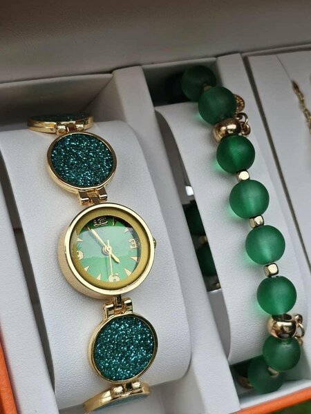 Montre et bracelet doré vert