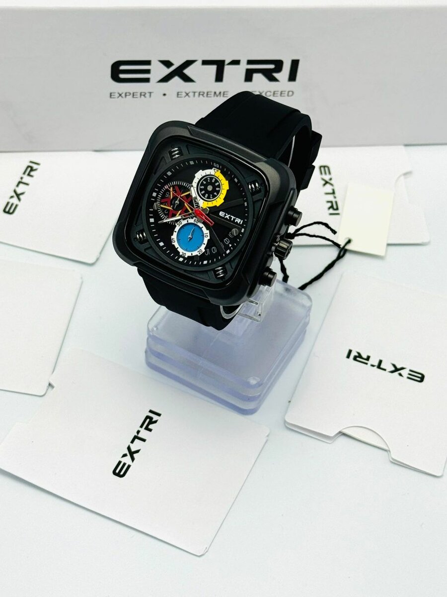 Découvrez la montre sportive EXTRI pour homme, idéale pour un look moderne et audacieux. Dotée d'un cadran carré robuste avec des détails colorés, elle est parfaite pour toutes les occasions. Son bracelet en silicone assure un confort optimal tout au long de la journée. Parfaite pour un usage quotidien ou pour agrémenter vos tenues de sport et de loisirs.