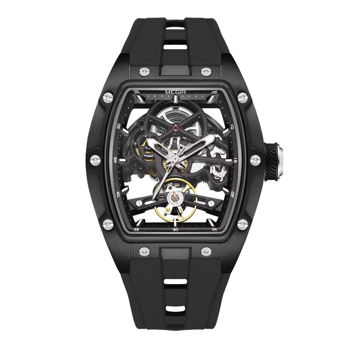 Découvrez l'élégance sportive avec cette montre squelette pour homme. Son design audacieux et son bracelet en silicone offrent à la fois confort et style moderne. Parfaite pour les amateurs de montres mécaniques sophistiquées. Idéale pour le quotidien ou pour des occasions spéciales. Résiste a l'eau .