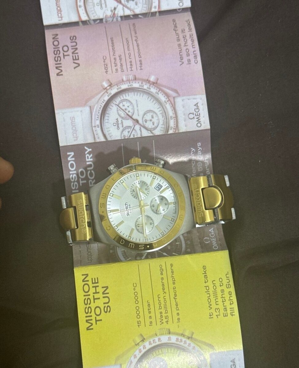 Découvrez l'élégance et la précision avec cette montre Swatch dorée Mission to Venus. Dotée d'une chronographe et d'une allure raffinée, elle est parfaite pour les passionnés de style et de technologie. Idéale pour un usage quotidien comme pour les occasions spéciales, et livrée avec son étui d'origine. Faites l'expérience du luxe accessible et démarquez-vous.