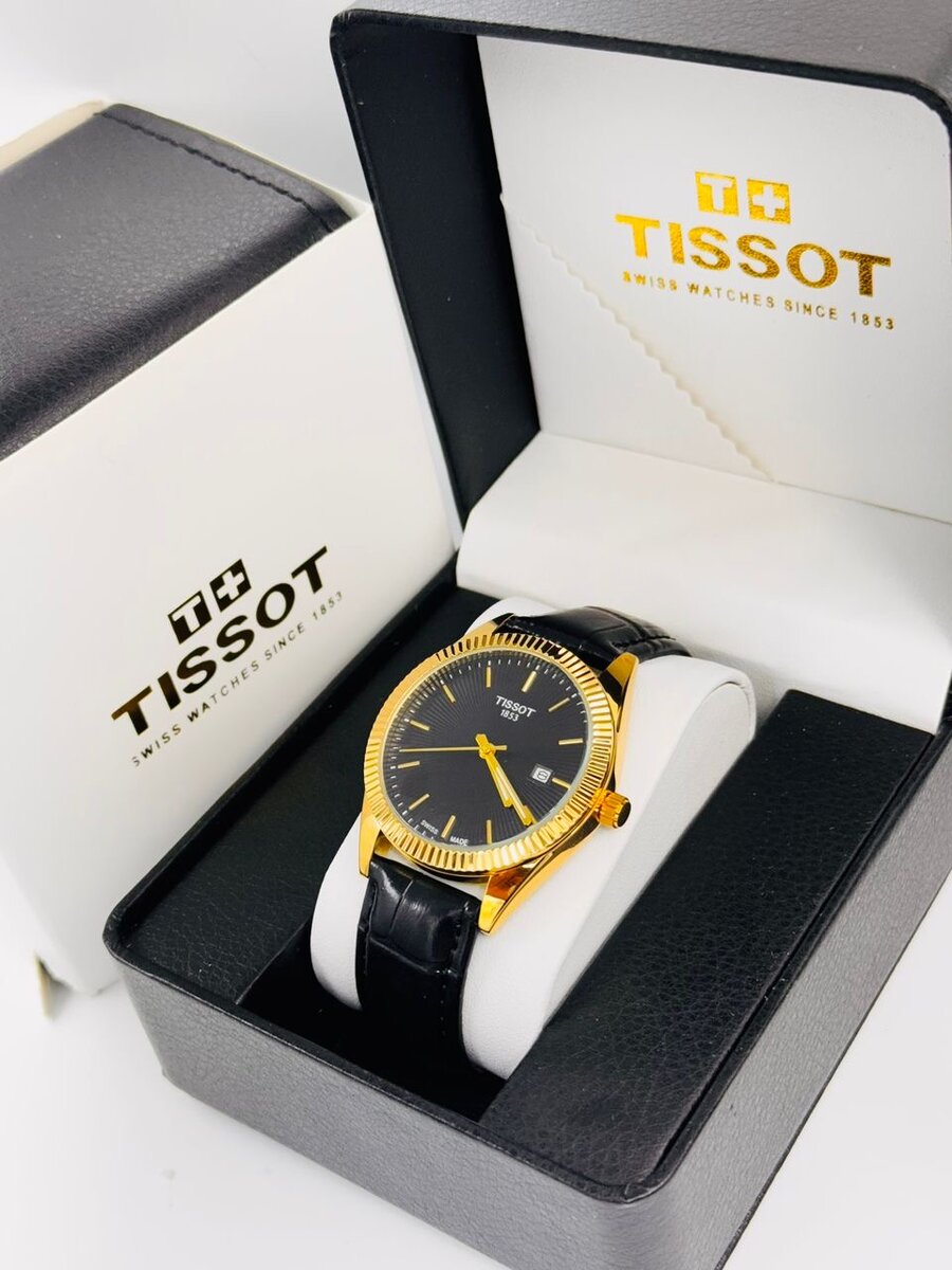 Découvrez cette élégante montre Tissot pour homme, équipée d'un bracelet en cuir noir et d'un cadran noir doré. Un accessoire de luxe idéal pour les occasions spéciales.