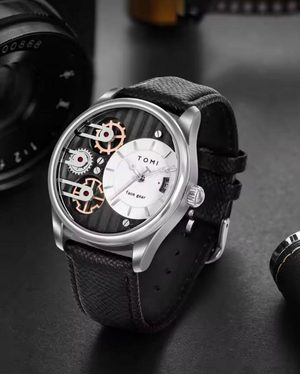 Découvrez la montre automatique Tomi pour homme, avec un design élégant et des rouages apparents. Fabriquée avec des matériaux de haute qualité, cette montre est idéale pour les amateurs de mécanique.