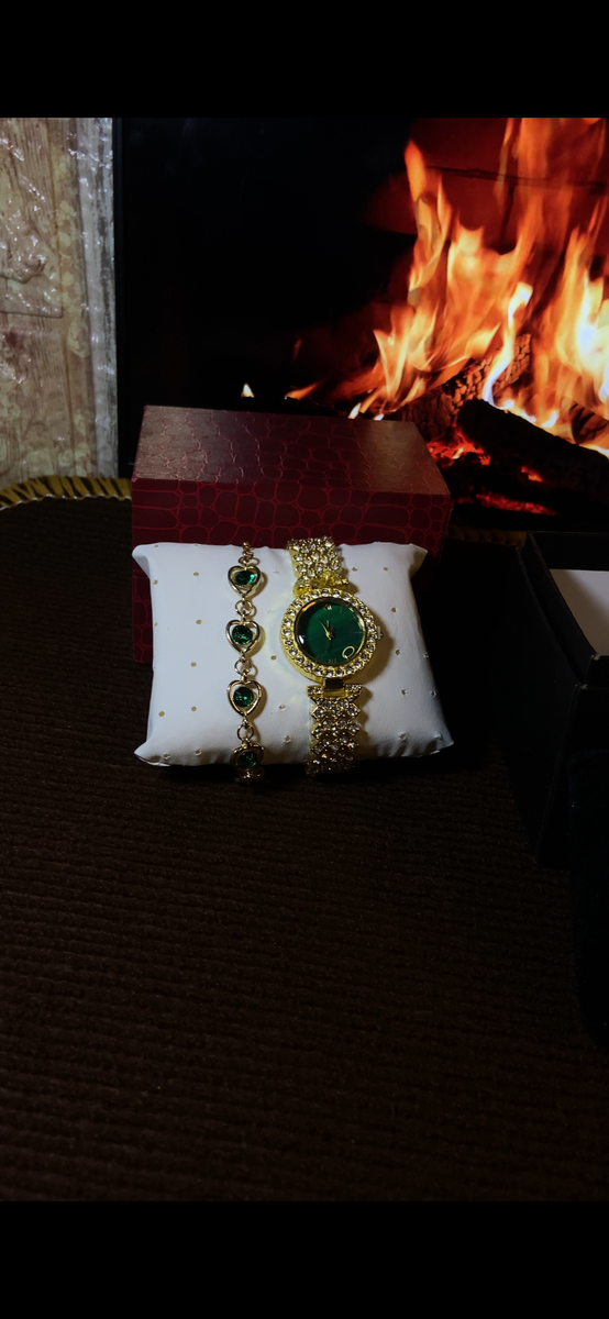 Cette élégante montre en or avec émeraude captivante et bracelet assorti est le choix parfait pour une touche de luxe. Idéale pour des occasions spéciales ou un usage quotidien, elle rehausse n'importe quelle tenue. Offrez-vous ou à un être cher ce bijou inoubliable.