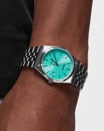 Élégante montre-bracelet en acier inoxydable avec cadran turquoise, idéale pour un style moderne et audacieux. Parfait pour toutes occasions.