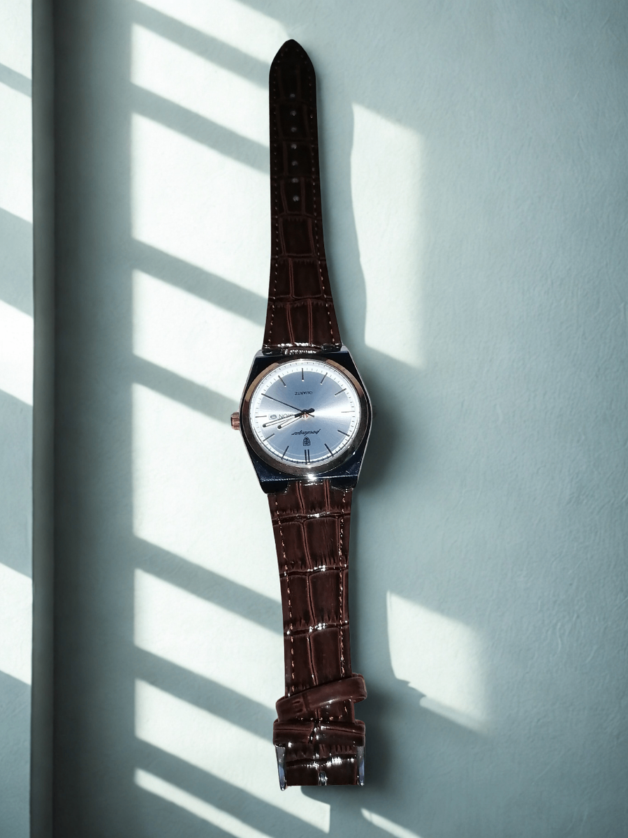 Découvrez cette montre-bracelet intemporelle avec un bracelet en cuir marron. Parfaite pour toutes les occasions, elle ajoute une touche d'élégance à n'importe quelle tenue. Idéale pour un usage quotidien ou des événements spéciaux.