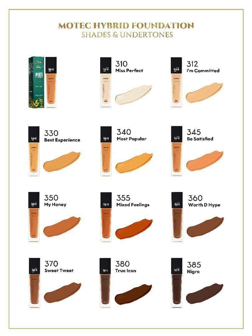 Discover flawless coverage with Motec Hybrid Foundation. Available in diverse shades to perfectly match your unique skin tone. Long-lasting and lightweight formula for a natural, radiant finish. Ideal for everyday wear, ensuring your skin looks its best all day. Get the perfect shade and achieve your desired look effortlessly.