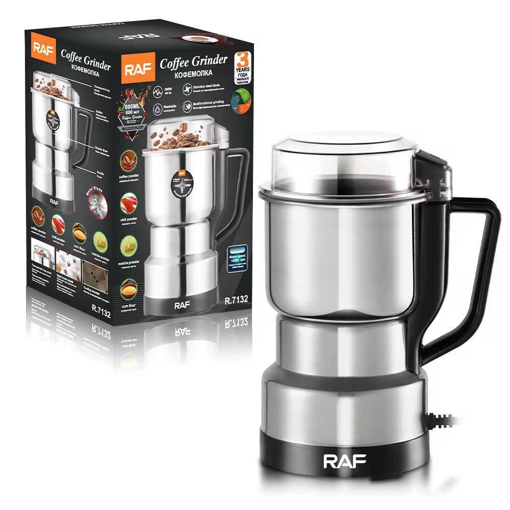 Moulin à café électrique RAF, idéal pour des grains fraîchement moulus. Acier inoxydable, design compact. Parfait pour une saveur authentique à domicile. Convient à tous les amateurs de café.