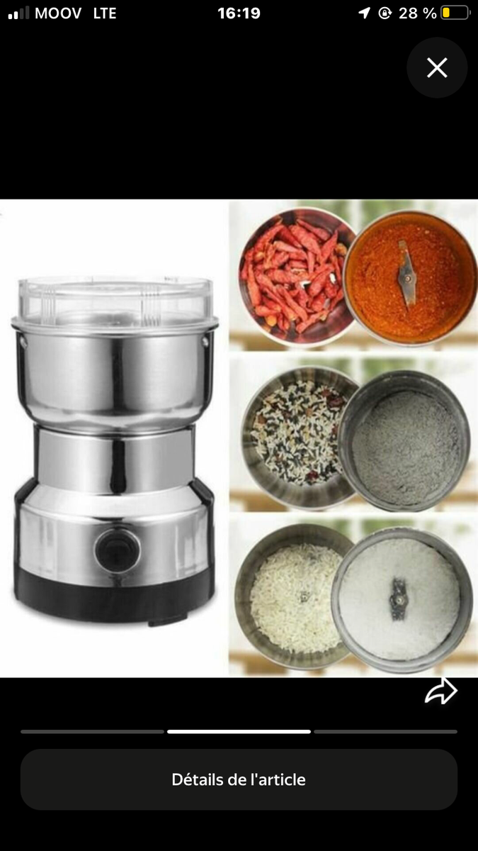Découvrez notre moulin à épices électrique, idéal pour moudre café, épices et noix avec efficacité et rapidité. Fabriqué en acier inoxydable de haute qualité, il garantit une longue durée de vie. Facile à utiliser, il est parfait pour votre cuisine moderne. Un must pour tous les amateurs de cuisine!