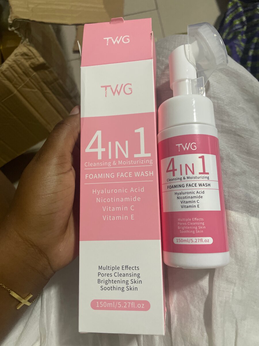 Découvrez notre mousse nettoyante 4 en 1 enrichie en acide hyaluronique, niacinamide, vitamines C et E. Nettoie, hydrate, éclaircit et apaise votre peau pour un teint éclatant. Idéale pour tous les types de peau.